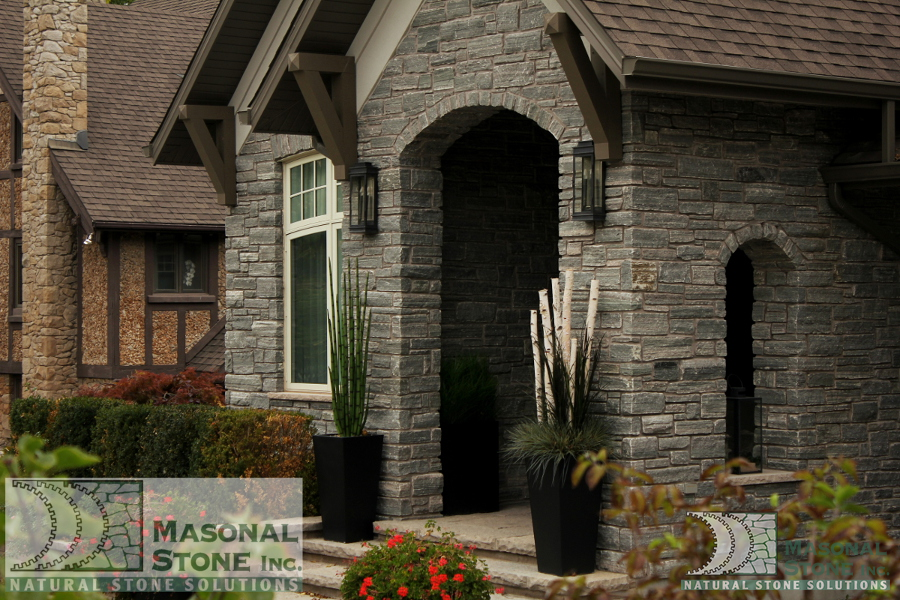 Approx. 1" in thin veneer, and 3.5"- 5" in fullbed |